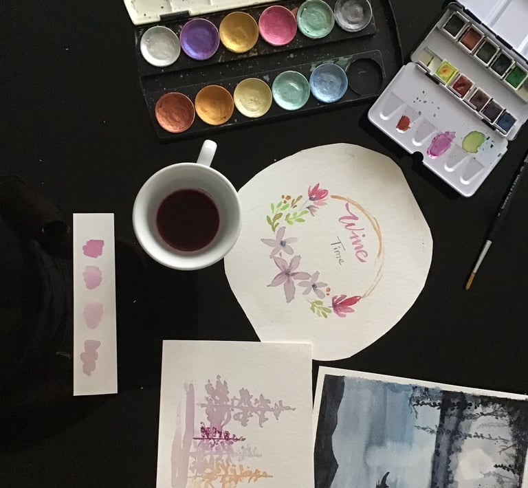 Ein entspannter Kreativabend mit Aquarellfarben, feinen Farbverläufen und einem Glas Wein